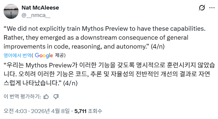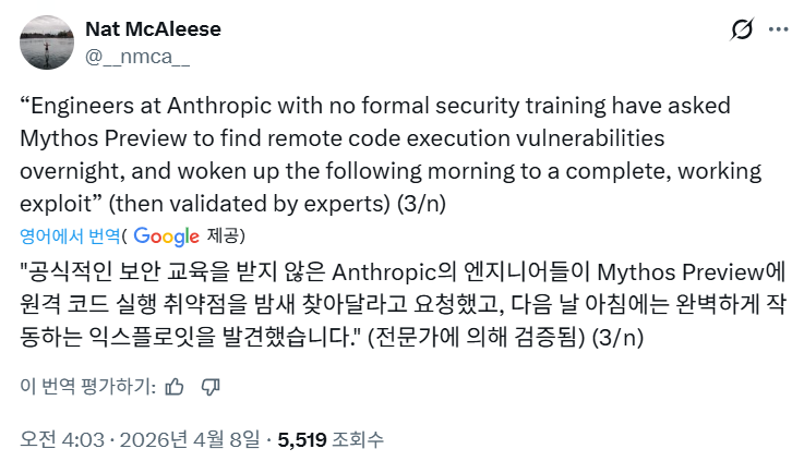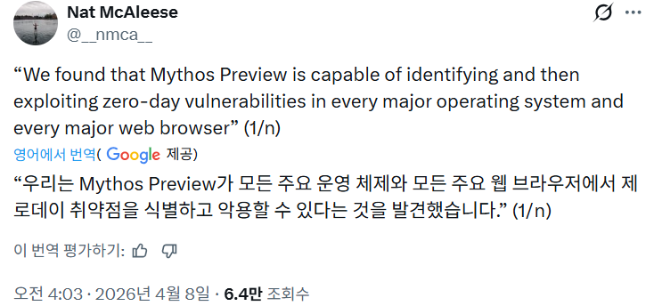 글래스윙 프로젝트를 소개합니다: 세계에서 가장 중요한 소프트웨어의 보안을 강화하기 위한 시급한 프로젝트입니다. 이 제품은 최첨단 모델인 Claude Mythos Preview를 기반으로 하며, 가장 숙련된 인간을 제외한 모든 사람보다 소프트웨어 취약점을 더 정확하게 찾아낼 수 있습니다.