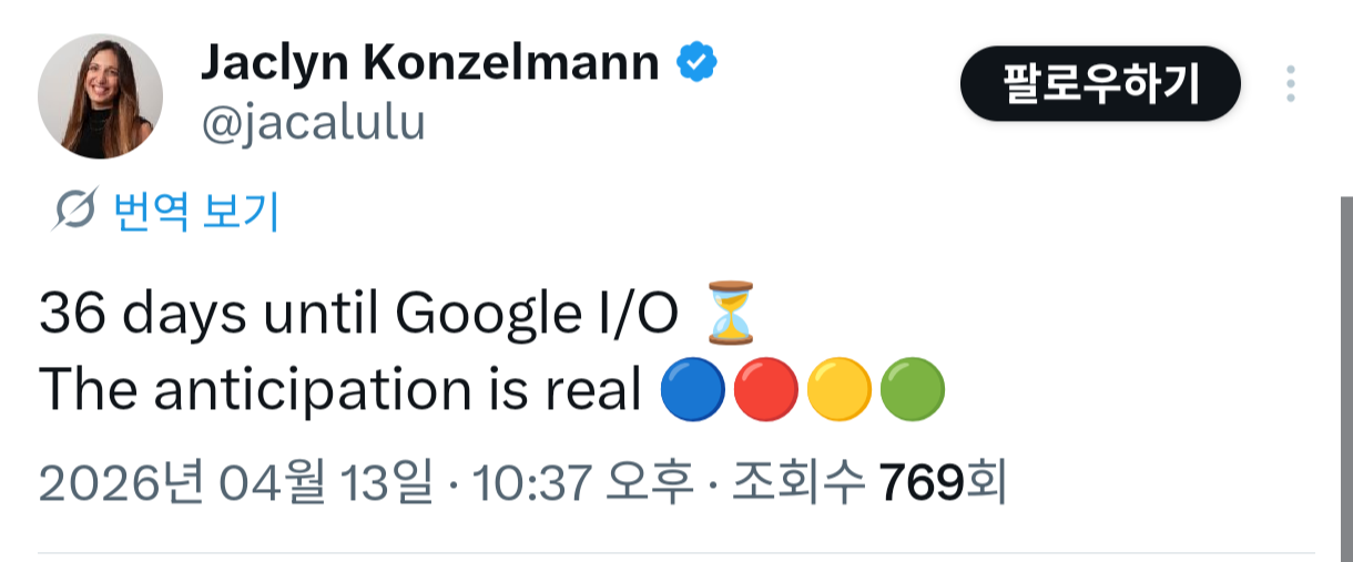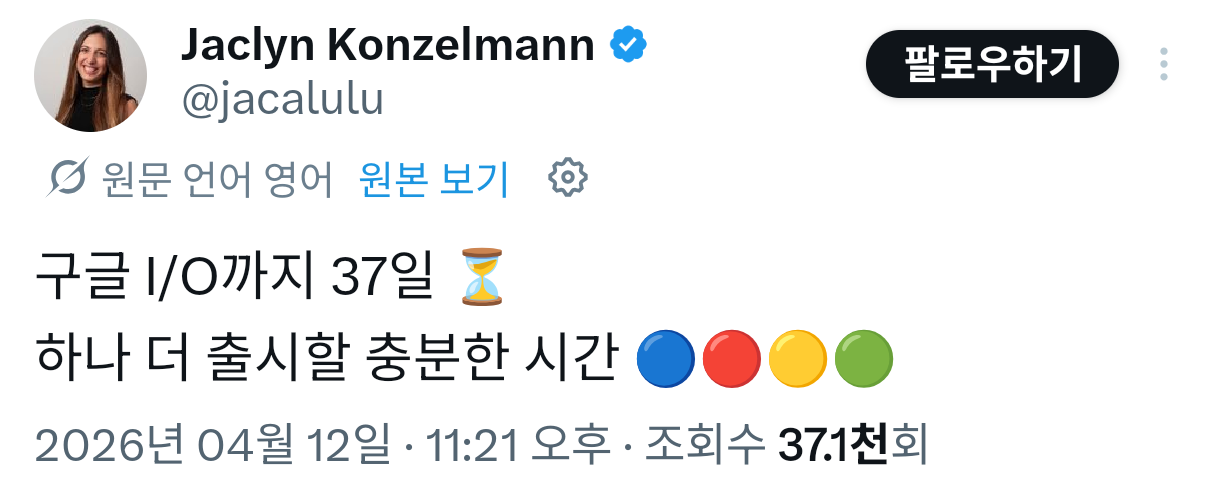 구글 제품 디렉터 "구글 io까지 37일, 하나 더 출시할 충분한 시간 🔵🔴🟡🟢"
